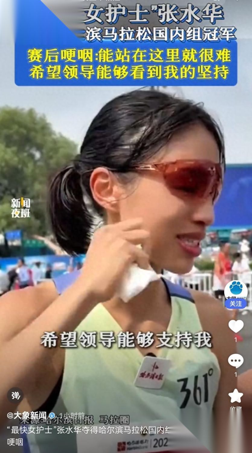 再来看数据,张水华抖音粉丝突破2.8万,头衔是国家健将级、签约361度品牌、还有MCN合作。不少网友质疑:全职护士还是全职跑马?你早有金主,还不如直接全职做运动员。”光鲜亮丽的背后,是职场同仁的劳累和资源倾斜;拿冠军、上头条、当“最美白衣天使”,可现实岗位还得有人“顶包”。